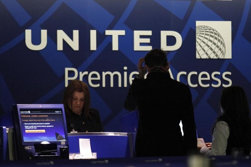 © Reuters. FILE PHOTO: A United Airlines Boeing 777-200ER plane is towed as American Airlines Boeing 737 plane departs from O’Hare International Airport in Chicago, Illinois, U.S. November 30, 2018. REUTERS/Kamil Krzaczynski/File Photo